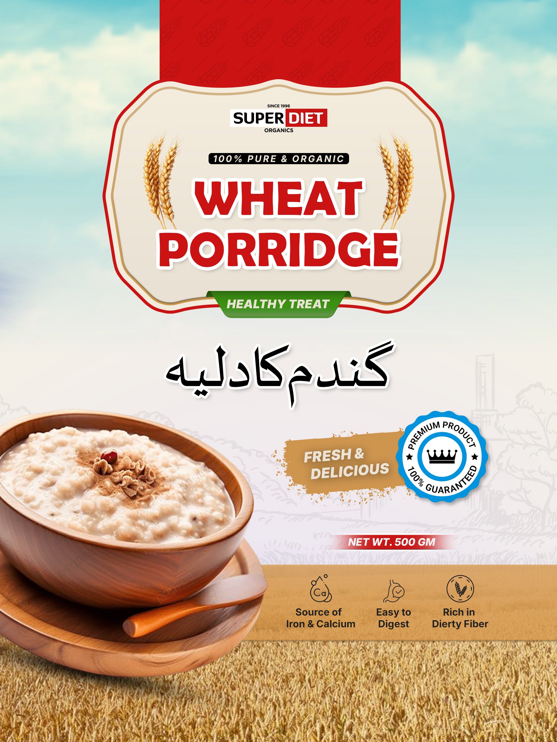 Start your day the healthy way with Super Diet Premium Wheat Porridge, made from carefully selected whole wheat grains. Rich in natural fiber, vitamins, and essential nutrients, this porridge supports digestion, boosts energy, and helps maintain a balanced diet.
